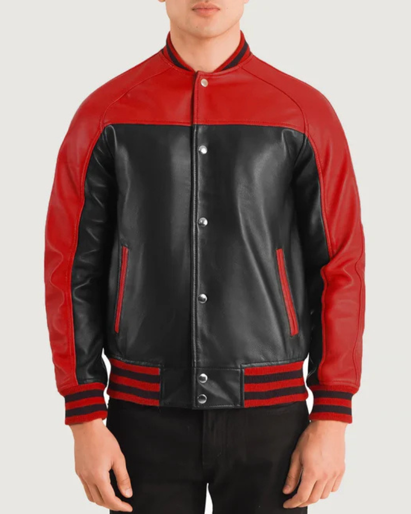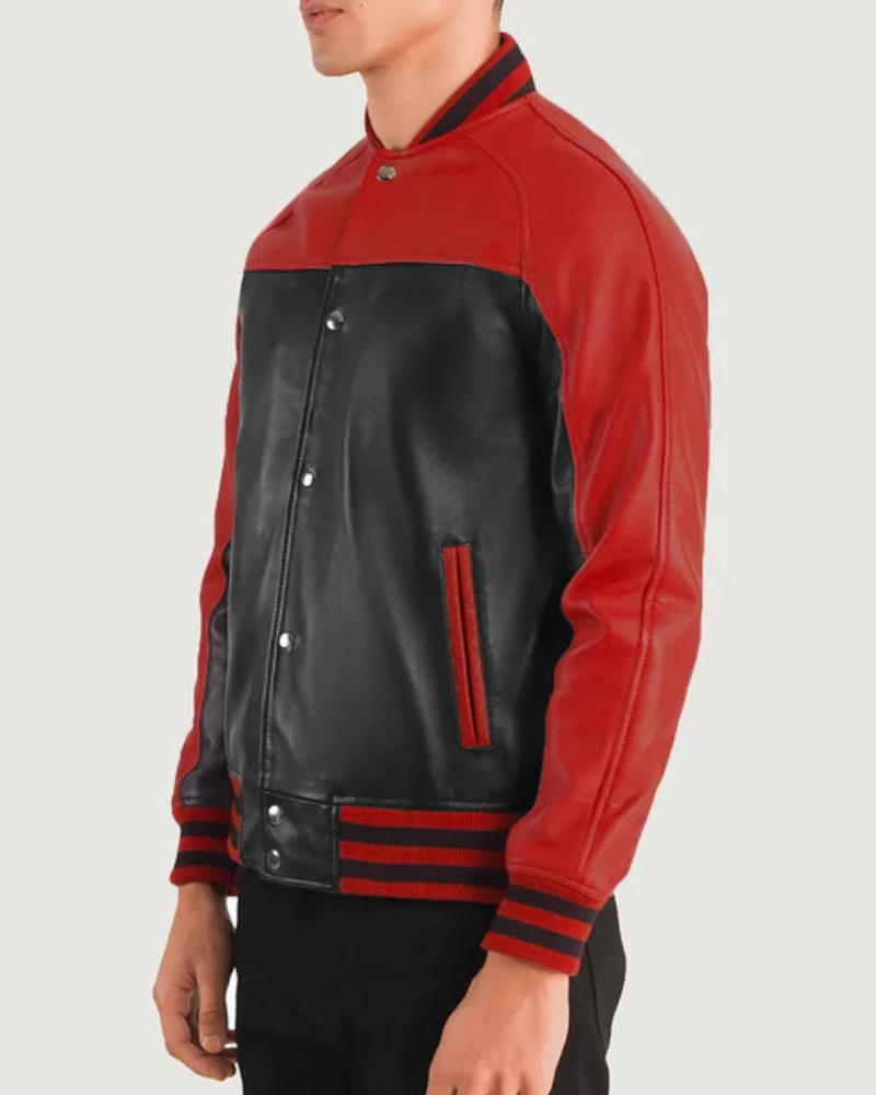 Make a bold statement with our premium men’s black and red leather varsity jacket, its made to give a look of vintage and classiness. To make this jacket both stylish yet comfortable the inner is made from viscose lining to ensure you feel comfortable all day long.