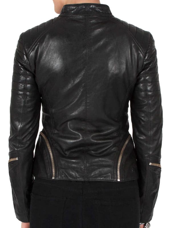 Womens Cafe Racer Leather Biker Jacket Black Cross Zipper